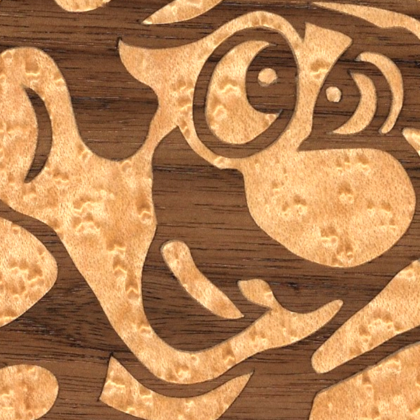 Close-up example of my marquetry. Every line was cut by hand. (click to enlarge)